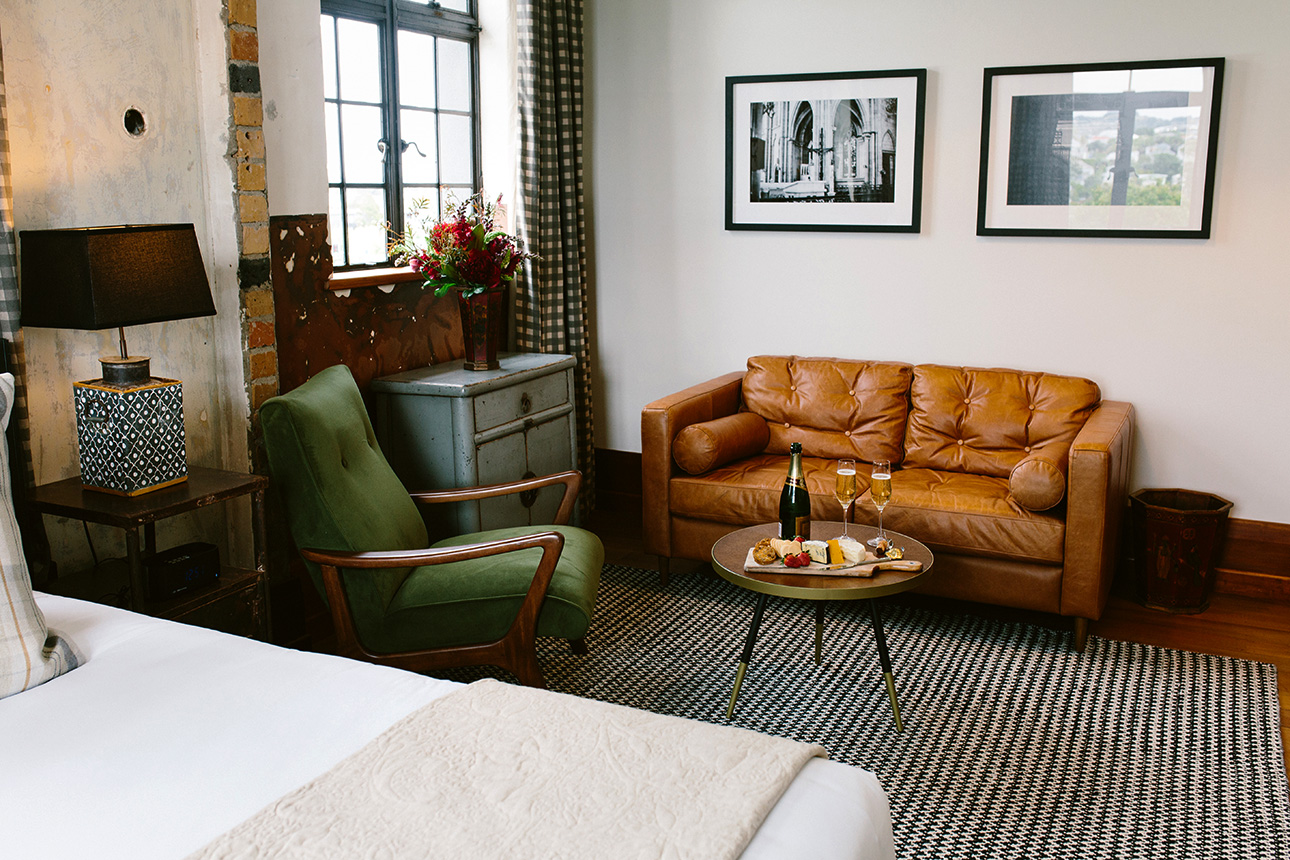 A compact but comfortable suite for a family or those wanting a little extra space to relax and rejuvenate. Comprising of a King bed studio and a separate single room, it has a full kitchenette, lounge and LED TV. You'll find the Sacristy on the second floor boasting arguably the best views from the hotel. Book for one night and you may just end up staying for more, it has all the luxuries and charming interiors that will guarantee an enjoyable and memorable stay.